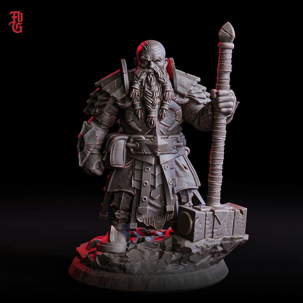 Dwarf Paladin, Fighter PC NPC | 28mm,32mm,54mm,75mm,100mm Scale Resin Miniature | Dungeons and Dragons D&D 5e Pathfinder | Flesh of Gods