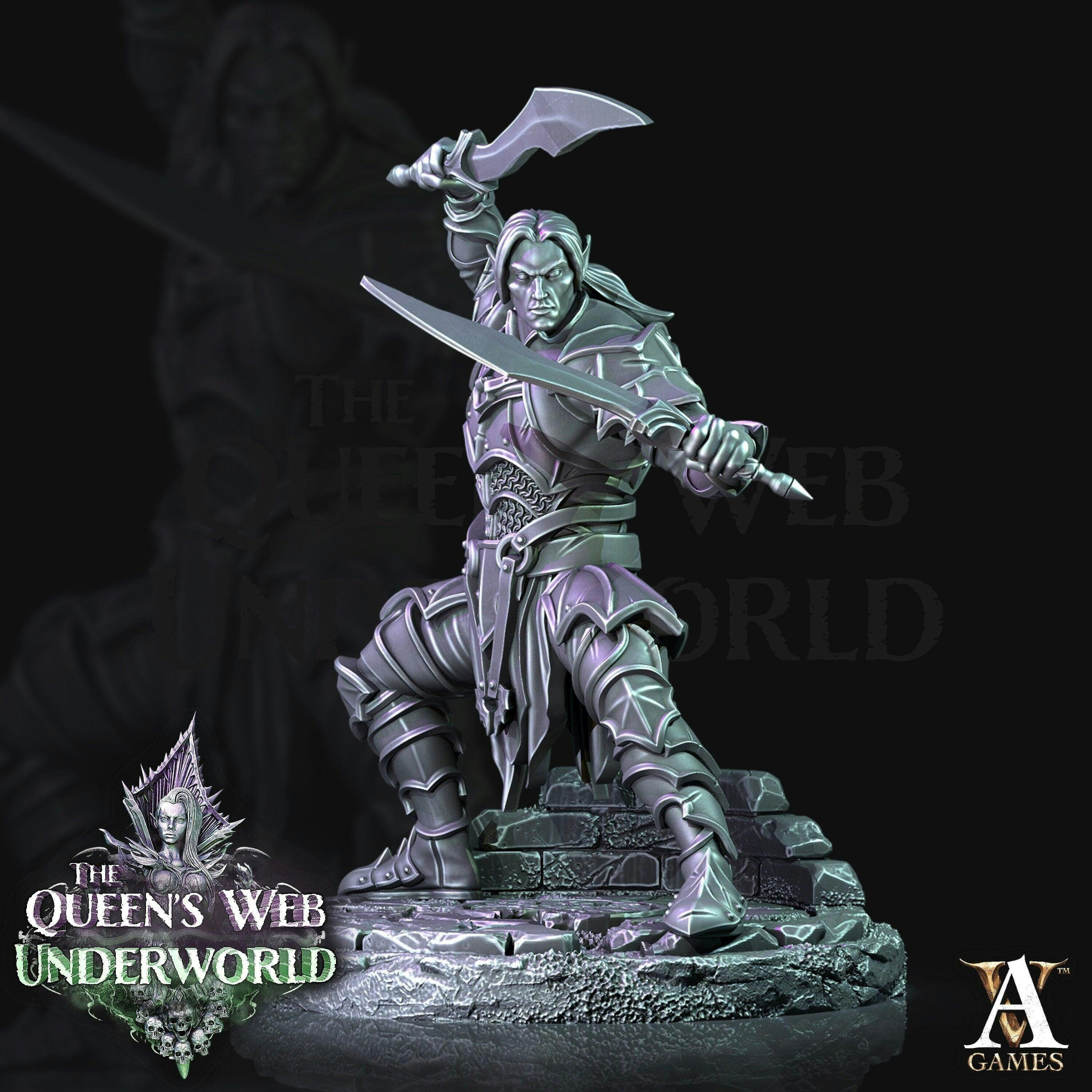 Dark Elf Drow Fighter | 28mm, 32mm, 75mm | DnD 5e Miniature | Dungeons and Dragons | Baenere | Melee-Magthere Menzoberranzan