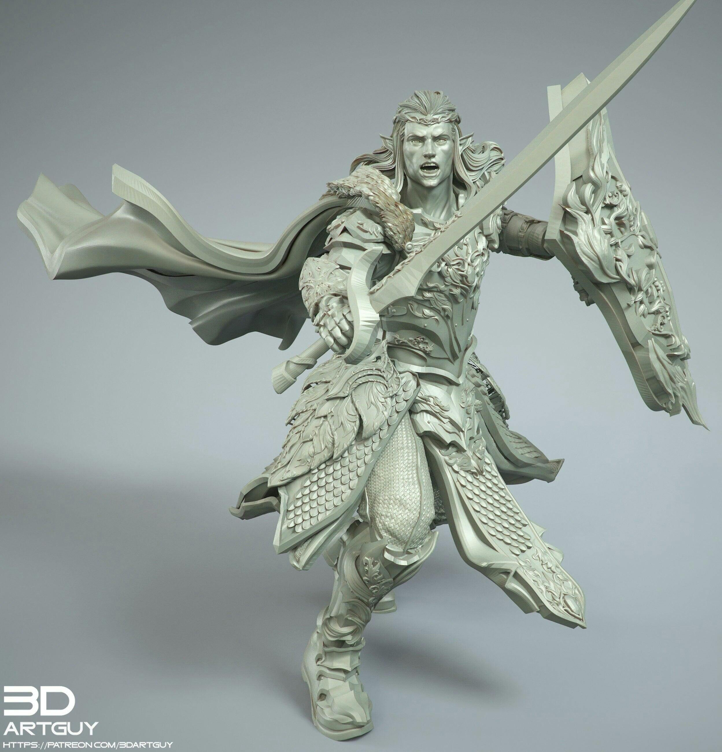 Elf Paladin with Sword and Shield and Heavy Armor | 28mm, 32mm Scales also 50mm and 100mm| Dungeons and Dragons| Pathfinder |3dArtGuy