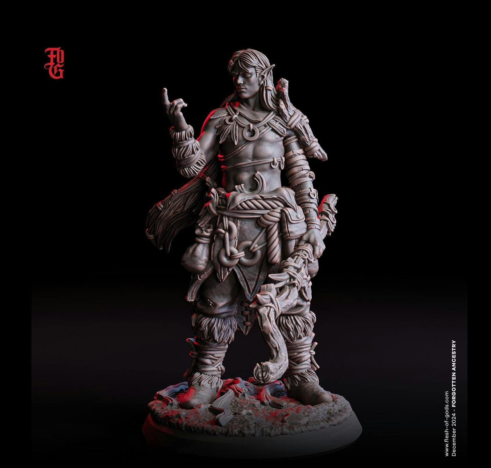 Elf Twilight Druid Cleric PC NPC | Resin Miniature 28mm,32mm,54mm,75mm,100mm Scale | Dungeons and Dragons, Pathfinder |Flesh of Gods