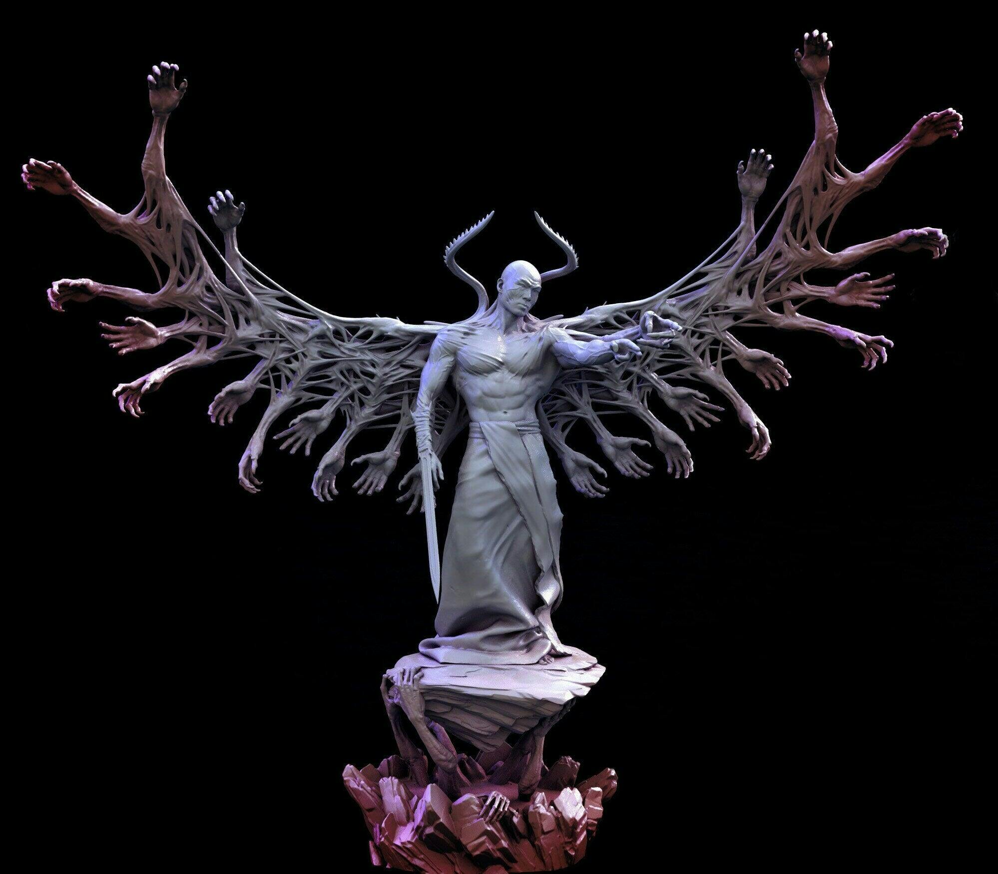 You are purchasing a single unpainted resin miniature of a Fallen Angel, Afflicted Celestial.