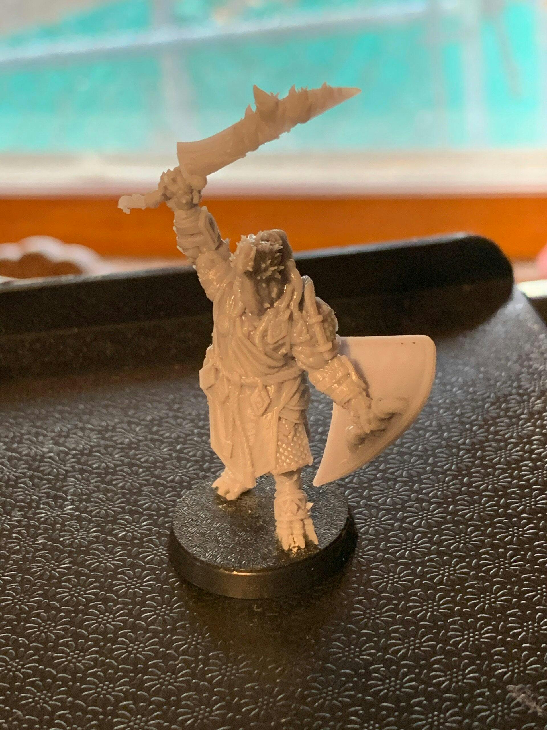 This 3d printed miniature is cleaned of supports, and then cured. Your figure will be printed along with a base. Minor assembly and cleaning required .