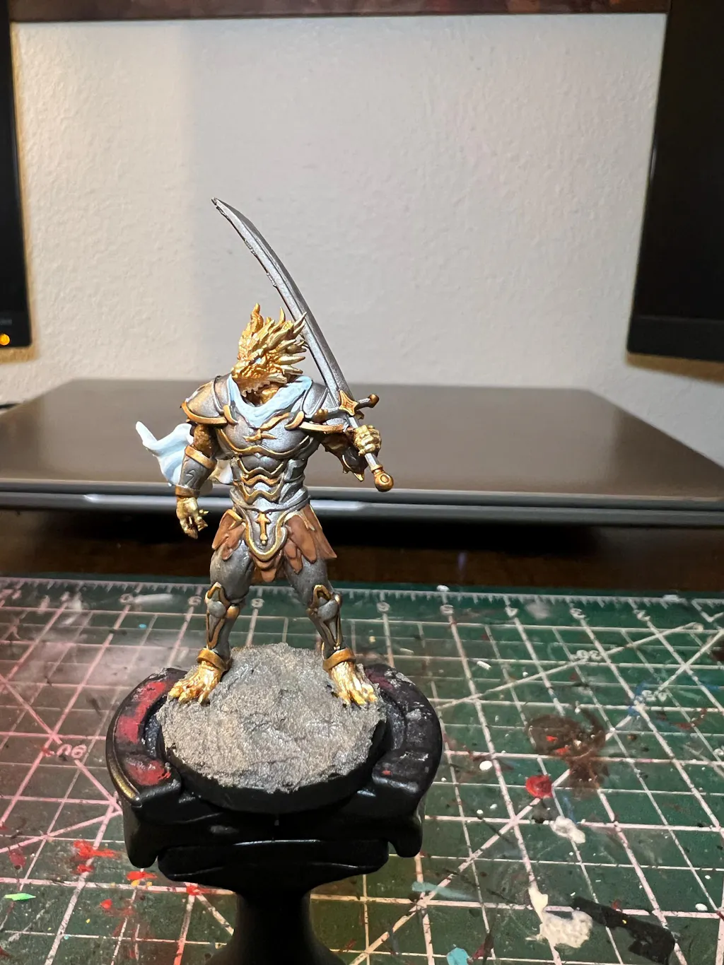 You are purchasing a single unpainted resin miniature of a Dragonborn Paladin Sword.