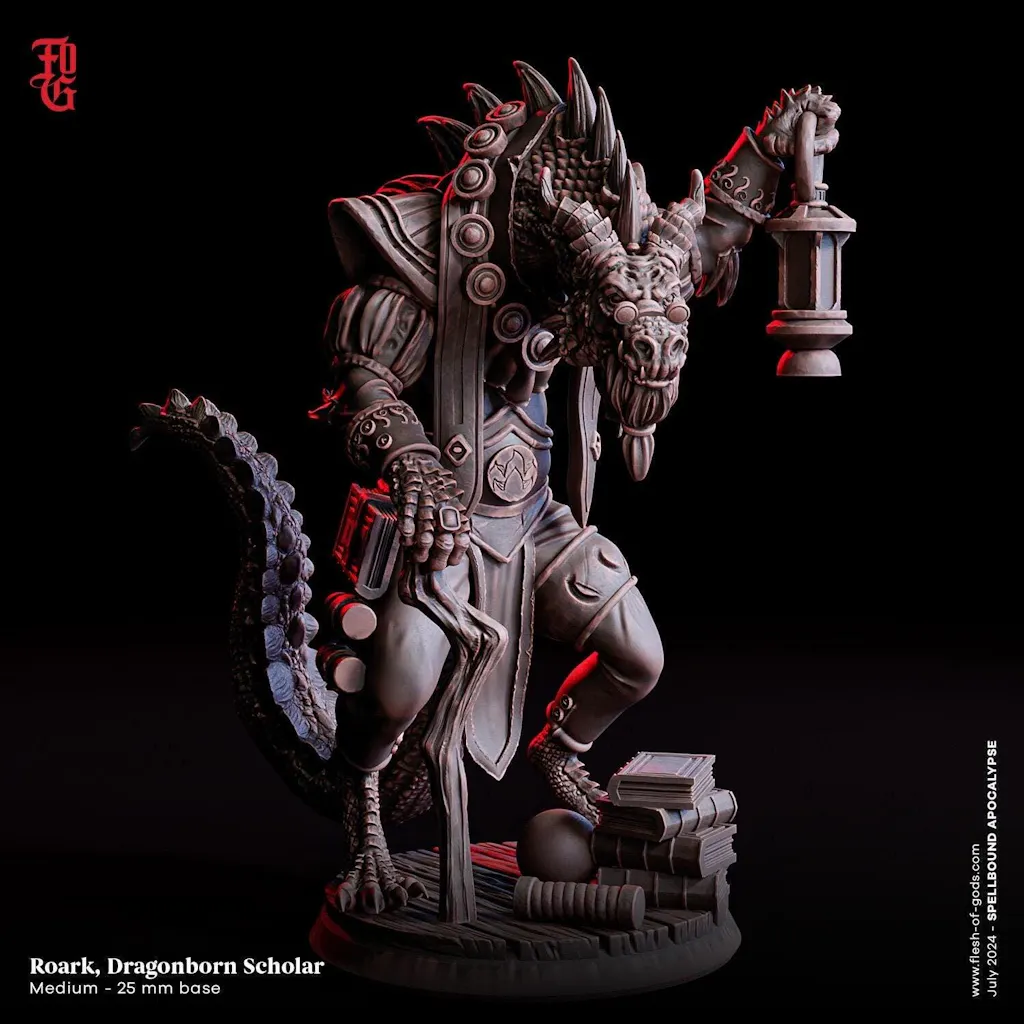 Dragonborn Wizard, Sorcerer, Warlock | 28mm,32mm,54mm,75mm,100mm Scale Resin Miniature | Dungeons and Dragons 5e Pathfinder | Flesh of Gods