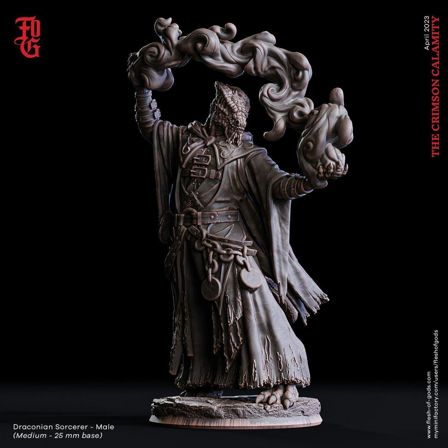 Male Dragonborn Sorcerer, Wizard, Warlock |28mm, 32mm,54mm,75mm, 100mm Scale Resin Miniature|Dungeons & Dragons |Pathfinder|Flesh of Gods