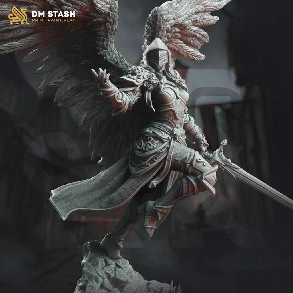 You are purchasing a single unpainted resin miniature of a Human Female Winged Paladin Cleric w/ Sword.