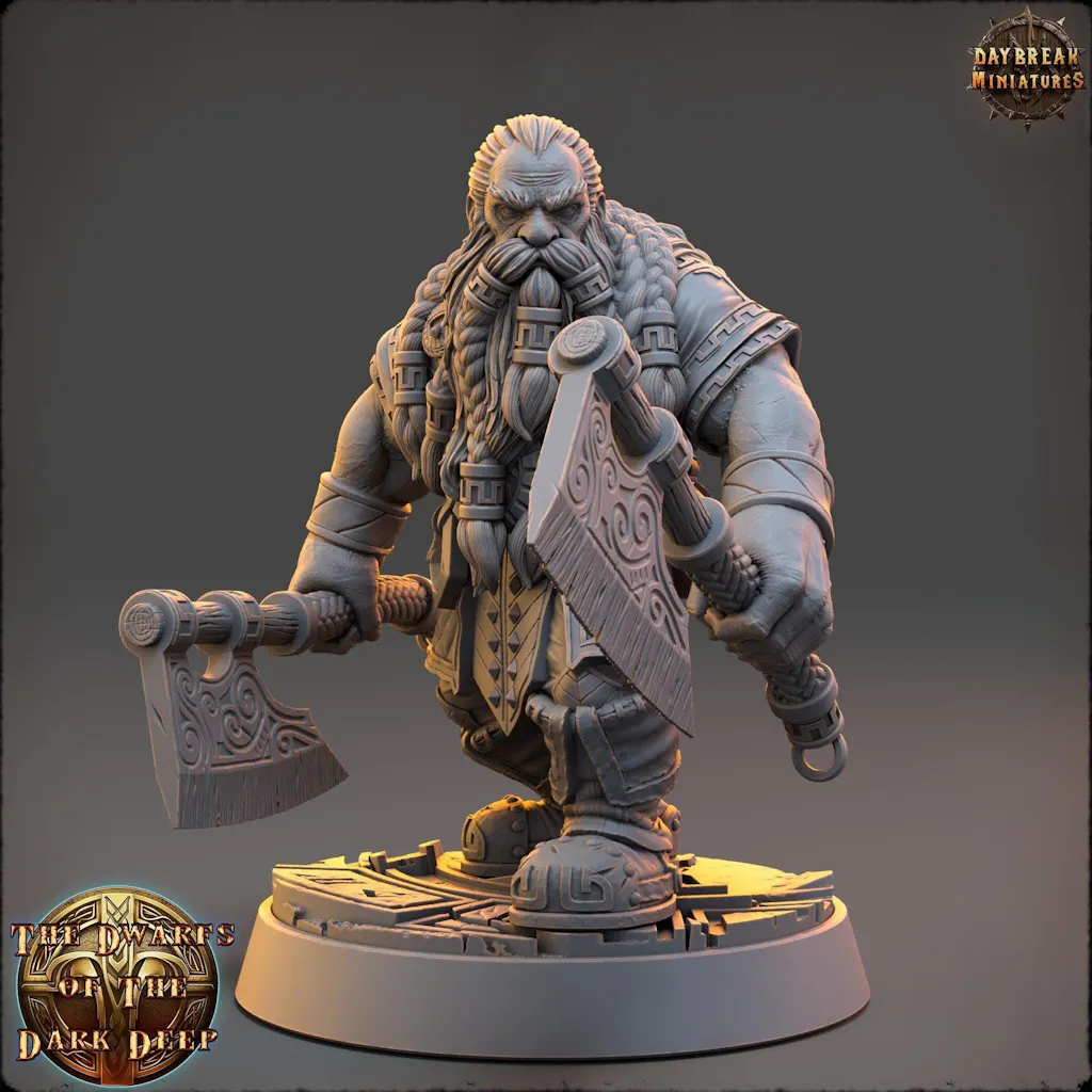 Dwarf Fighter 2 Hand Axes Miniature | Dungeons and Dragons | 28mm,32mm,54mm,75mm, 100mm Scale | Pathfinder Mini for Painting