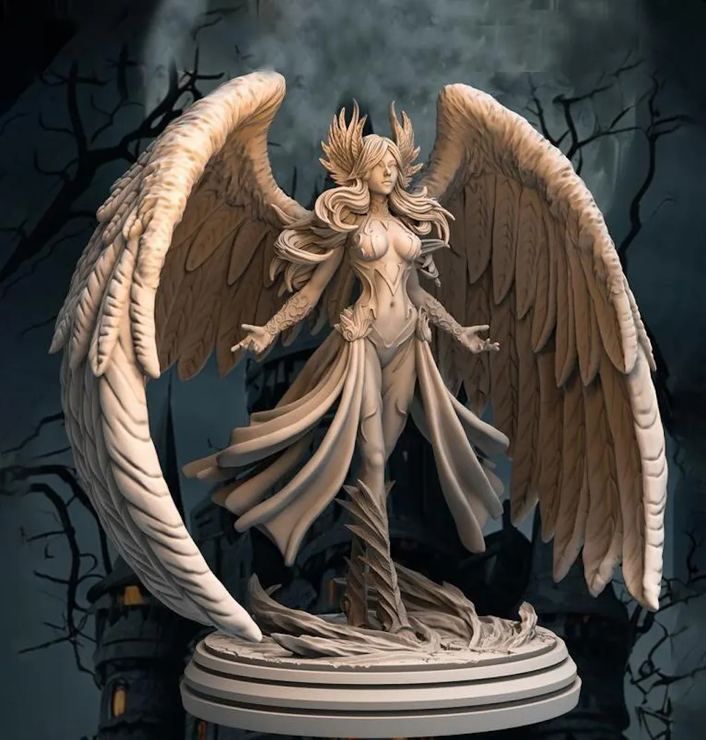 Female Angel Celestial Paladin PC NPC Miniature NSFW Topless versions | 28mm,32mm,54mm,75mm,100mm Scales |DnD 5e | Unpainted figure