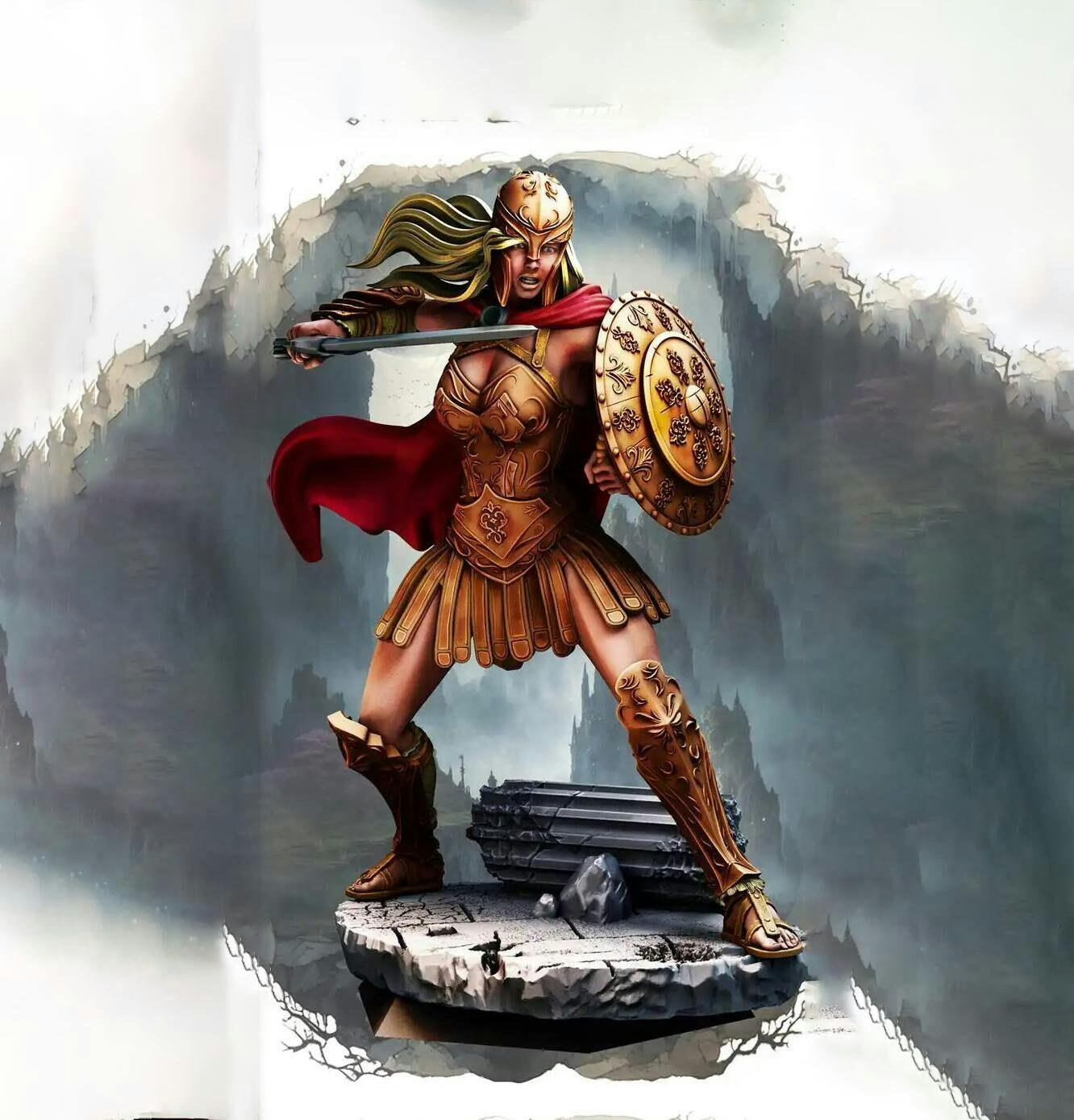 You are purchasing a single unpainted resin miniature of a Female Battlemaster Fighter, Sword and Shield D&D 5e Mini.