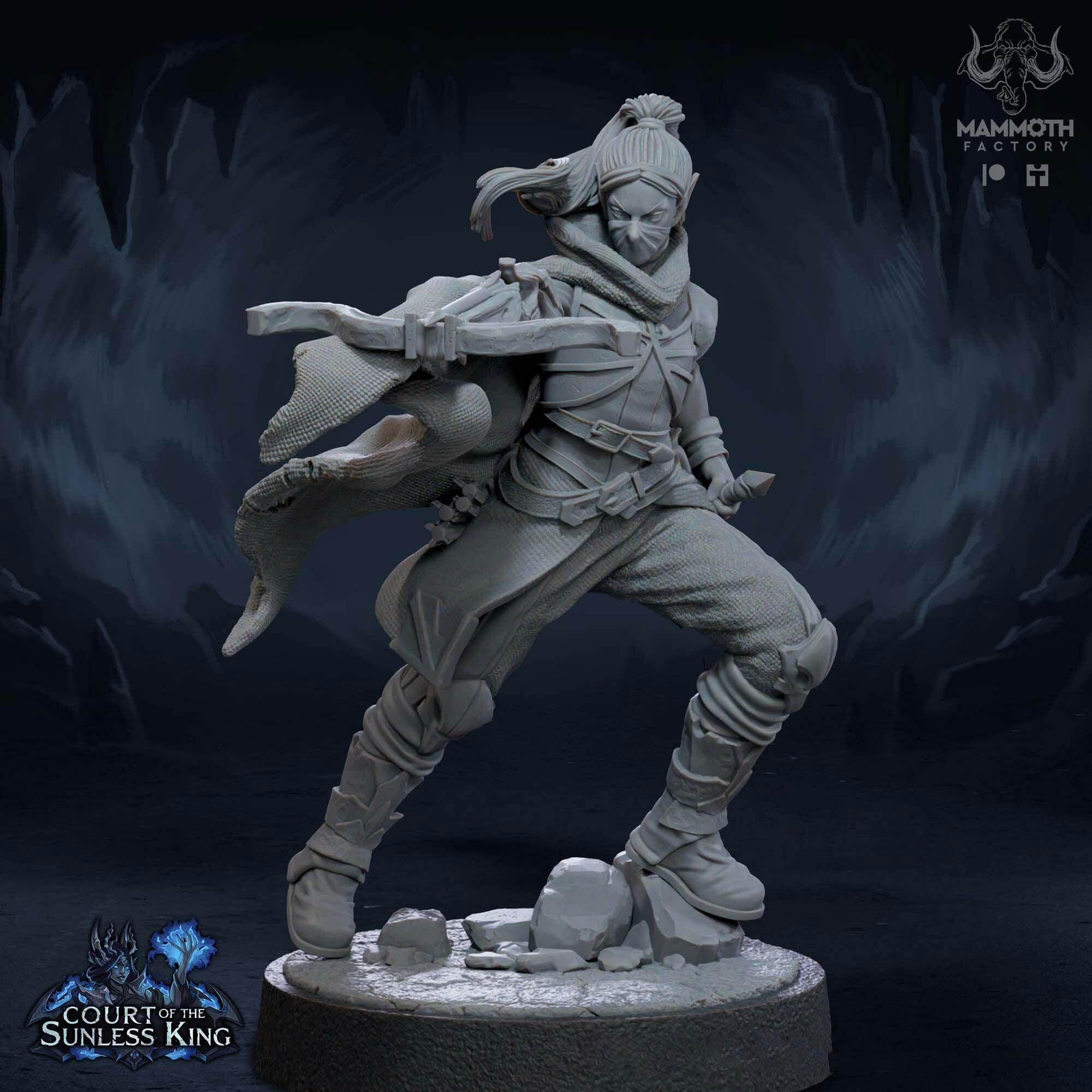 Female Elf Gloom Stalker Ranger Crossbow ExpertUnpainted | 28mm,32mm,54mm,75mm,100mm Scale |Resin Dungeons & Dragons |Mammoth Factory