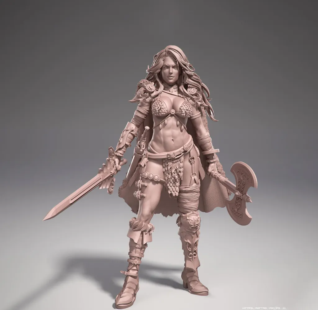 You are purchasing a single unpainted resin miniature of a Female Legendary Fighter Battlemaster Barbarian PC or NPC.