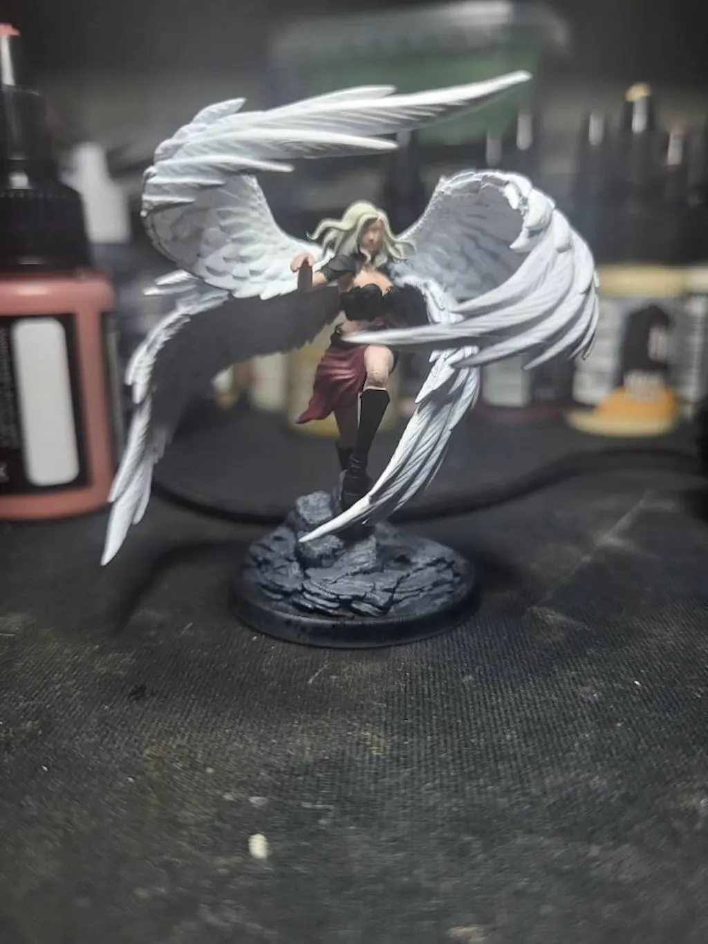 You are purchasing a single unpainted resin miniature of a Female Valkyrie Angel Celestial Paladin of Vengeance.