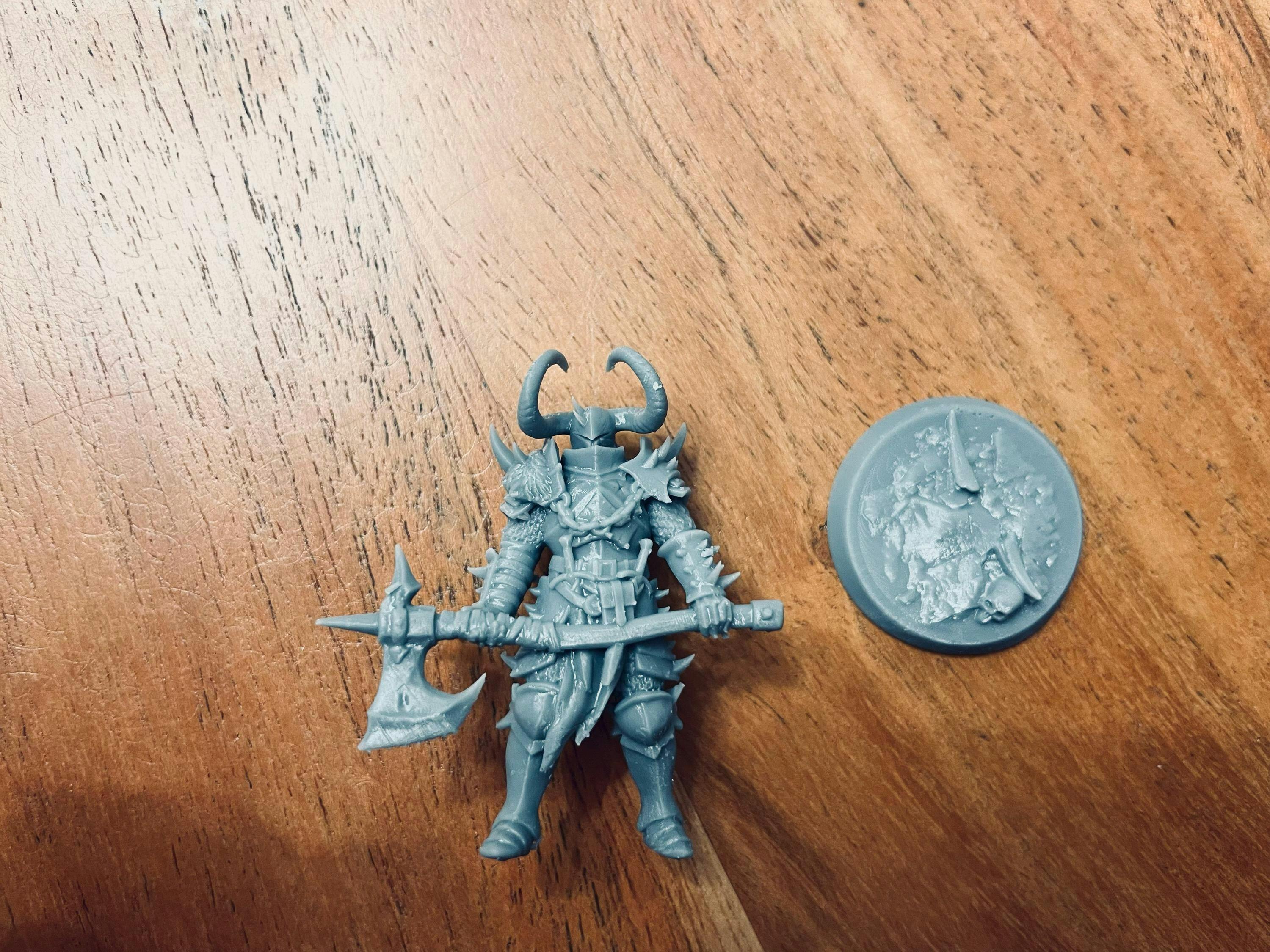 This 3d printed miniature is cleaned of supports, and then cured. Your figure will be printed along with a base. Minor assembly and cleaning required .