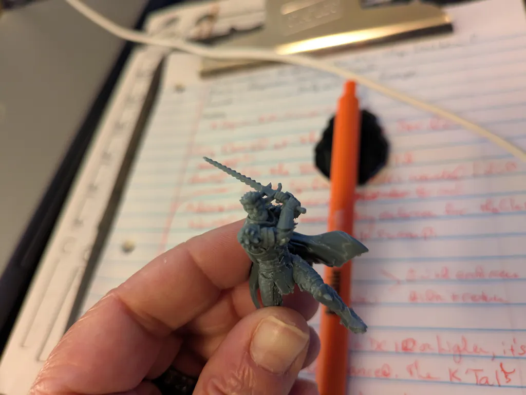 This 3d printed miniature is cleaned of supports, and then cured. Your figure will be printed along with a base. Minor assembly and cleaning required .