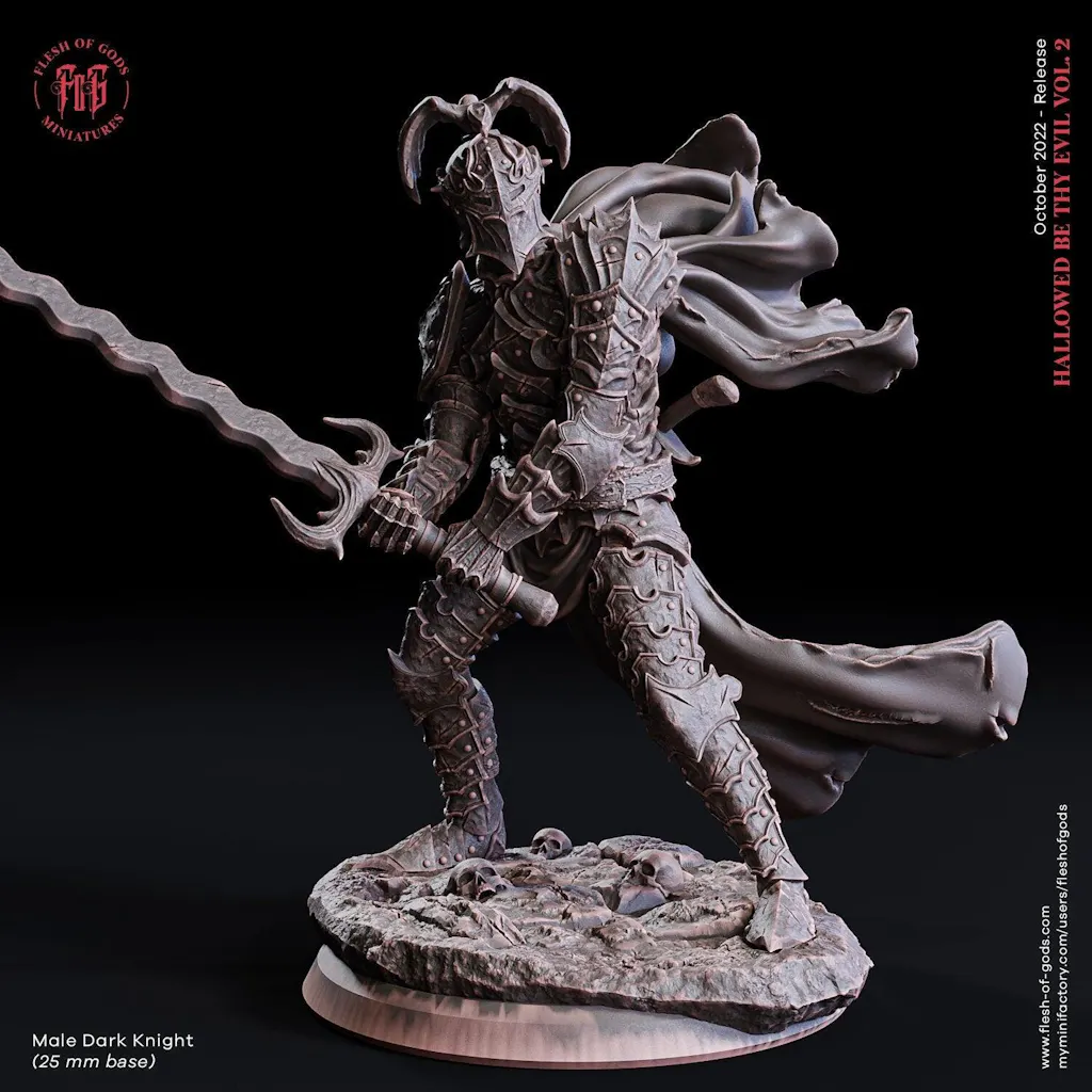 Oathbreaker Paladin Chaos Dark Knight Unpainted Miniature | 28mm, 32mm Scales | Dungeons and Dragons | Pathfinder | Flesh of Gods