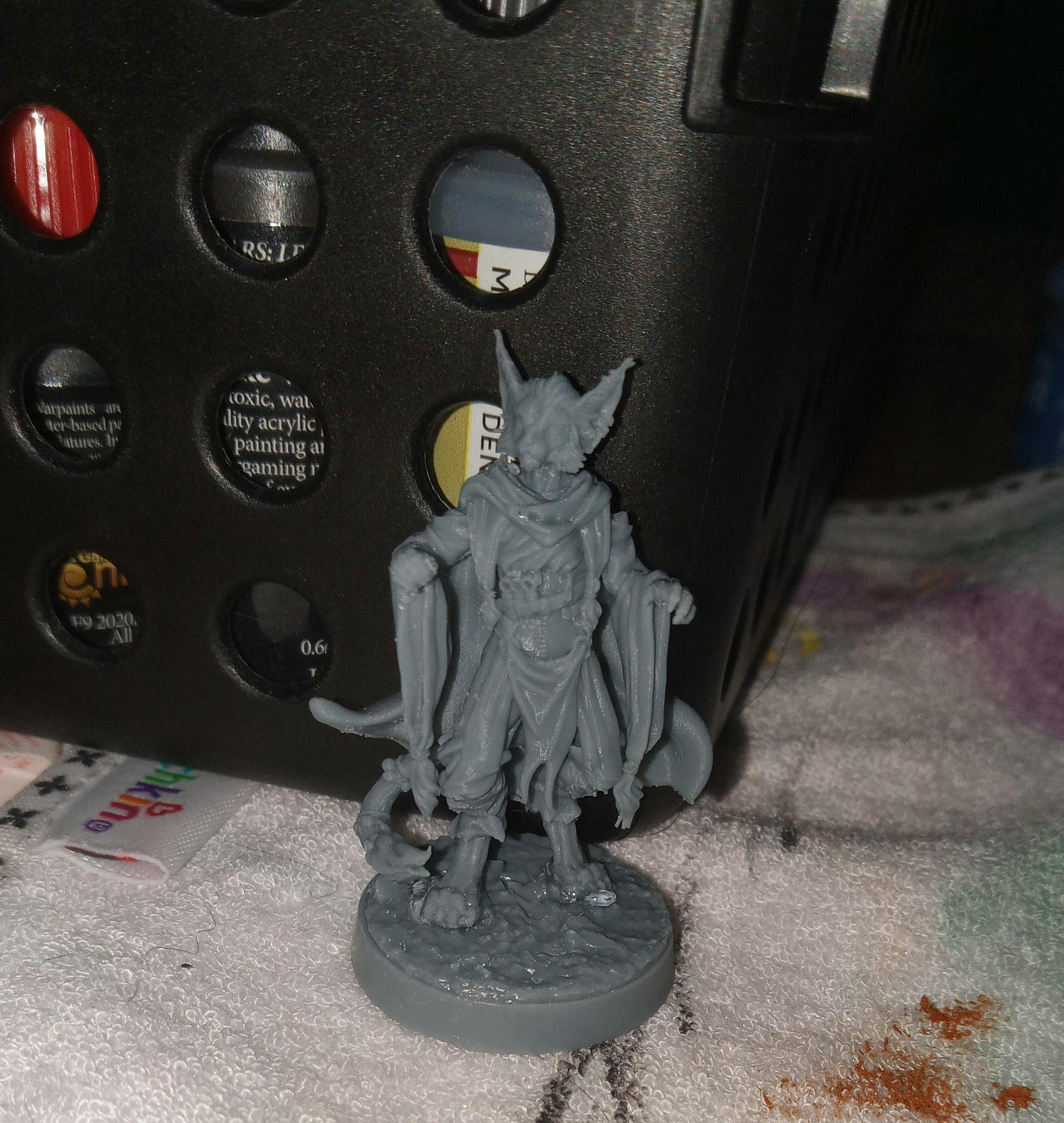 This 3d printed miniature is cleaned of supports, and then cured. Your figure will be printed along with a base. Minor assembly and cleaning required .