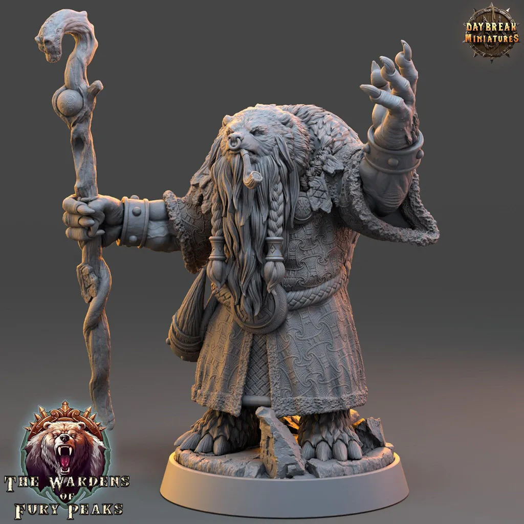 BearFolk Werebear Druid, ClericScales: 28mm, 32mm,54mm,75mm | D&D 5e Megaboss | Dungeons and Dragons | Pathfinder | Daybreak Miniatures