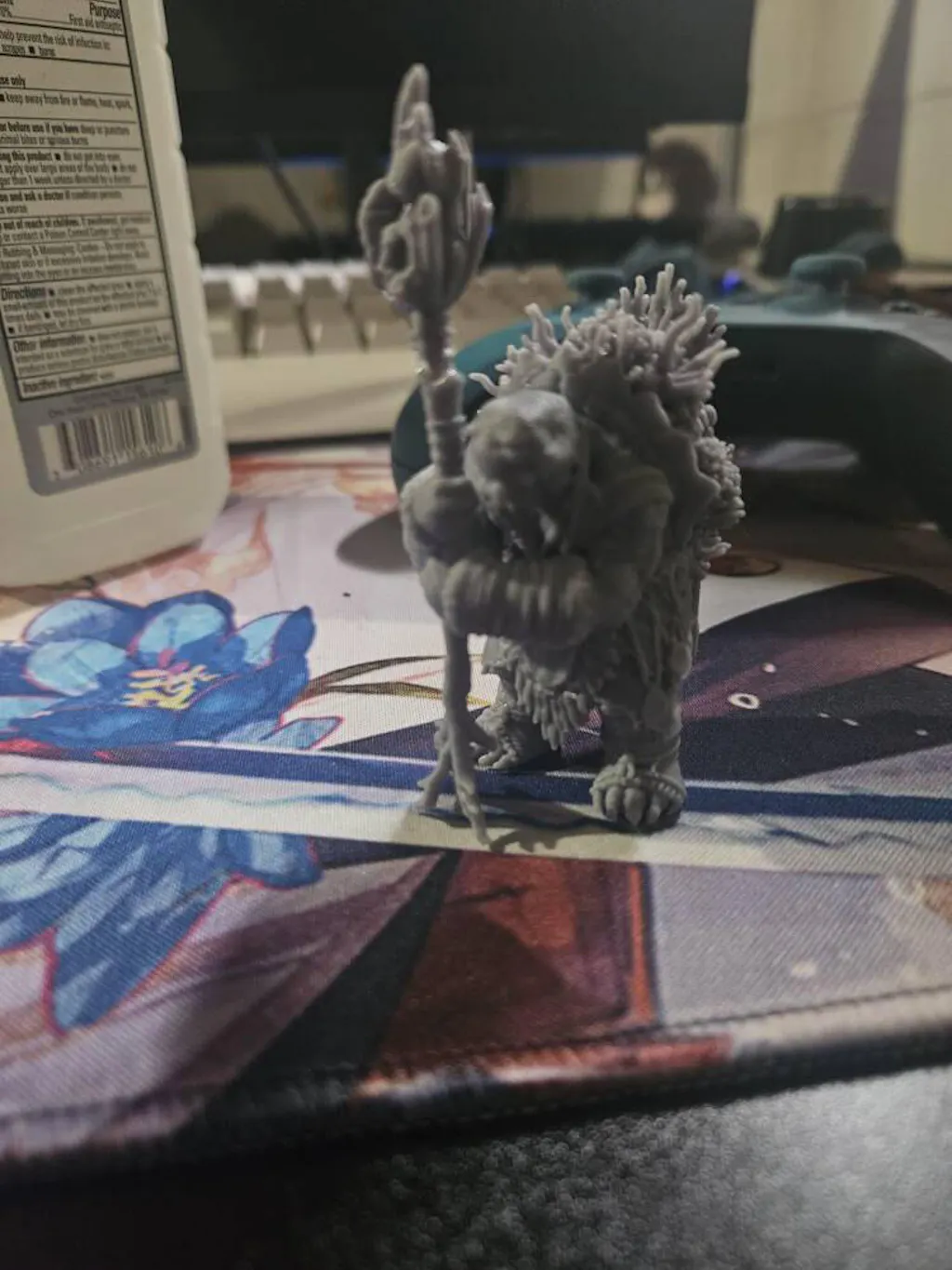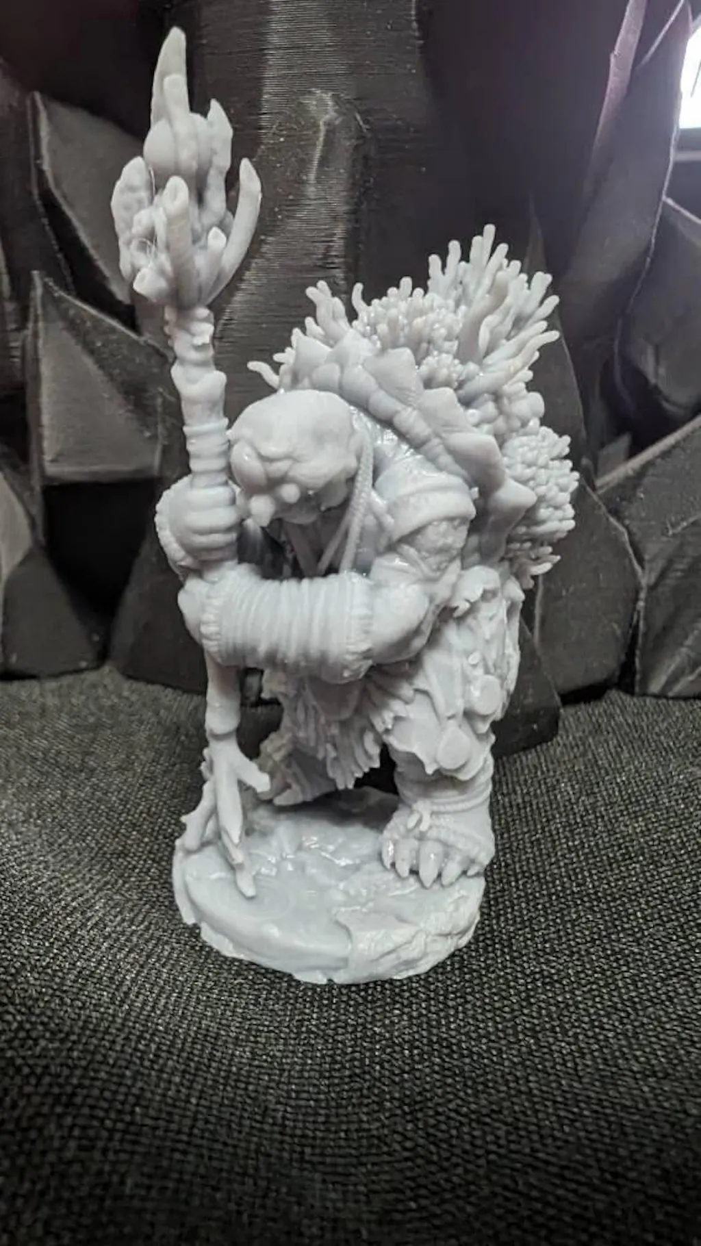 This 3d printed miniature is cleaned of supports, and then cured. Your figure will be printed along with a base. Minor assembly and cleaning required .