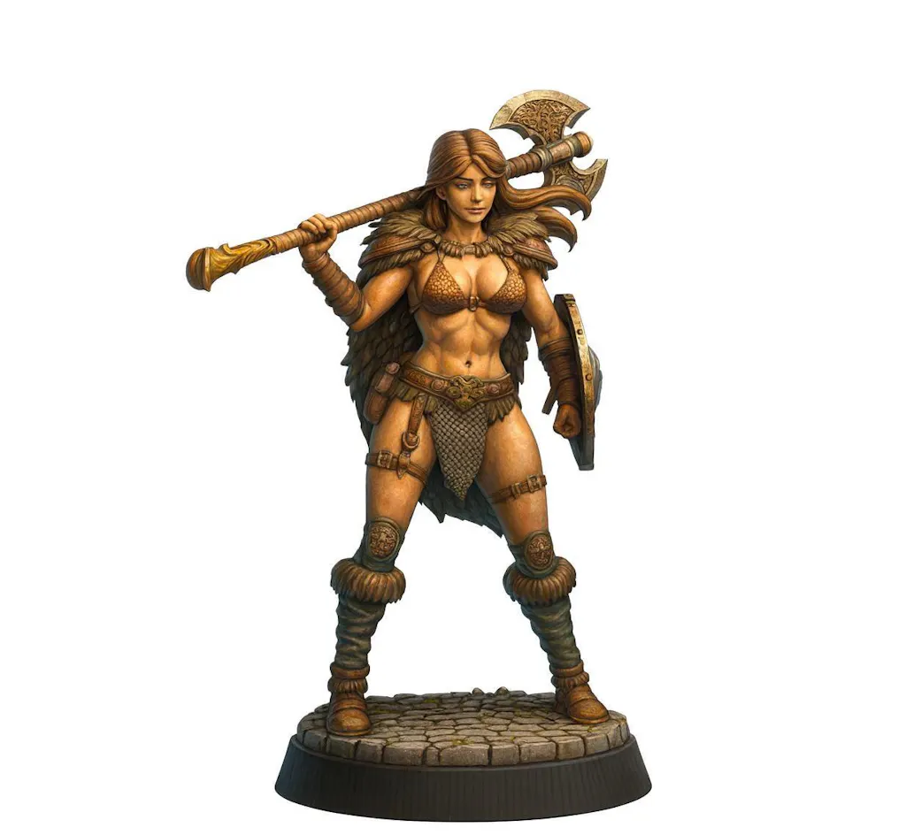 Human Female Barbarian Fighter UNPAINTED Resin Mini | 28mm,32mm,54mm,75mm,100mm Scale Resin Miniature |Dungeons and Dragons 5e | Pathfinder