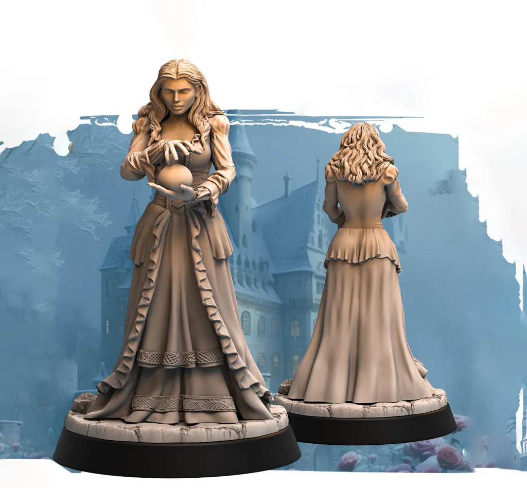 Human Female Wizard, Warlock, Sorcerer PC NPC | 28mm, 32mm,54mm, 75mm, 100mm Scale Resin Miniature | Dungeons and Dragons |