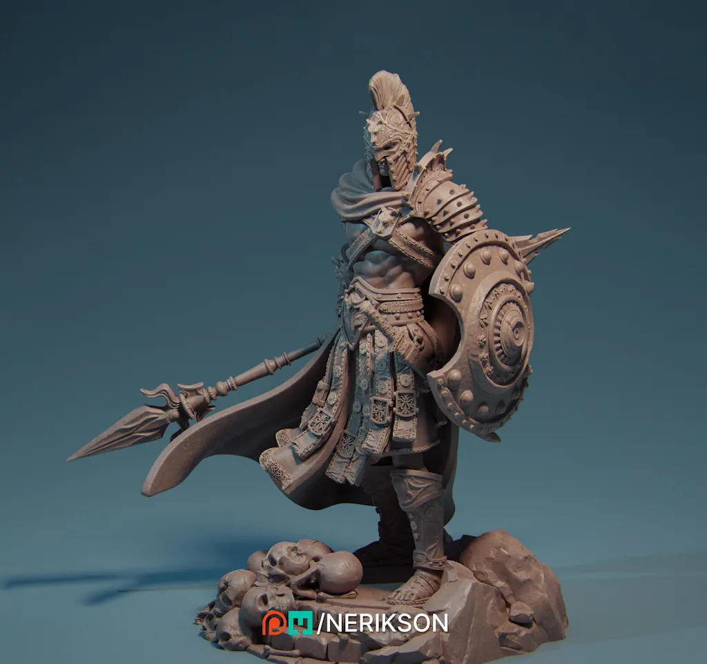 Human Fighter Polearm Master w/ Shield PC/ NPC Unpainted Figure | 28mm,32mm,54mm,75mm,100mm Scales | Dungeons & Dragons Pathfinder |NERIKSON