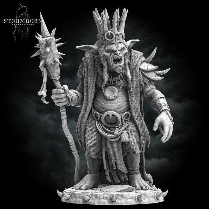 Goblin King, Shaman Wizard, Goblin PC / NPC| 28mm, 32mm,54mm,75mm,100mm Scales | Player Character Mini -D&D 5e Pathfinder Figurine