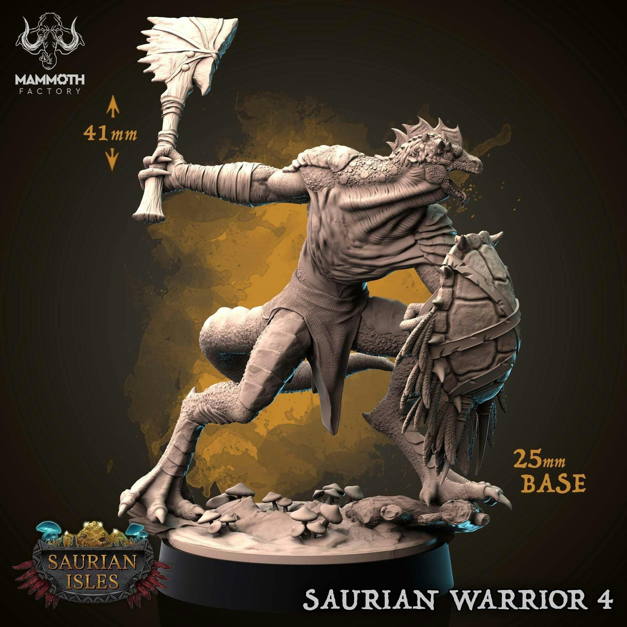 Lizardfolk Lizardman Warrior | 28mm, 32mm,75mm Scales | Dungeons and Dragons | Unpainted Figure | Mammoth Factory