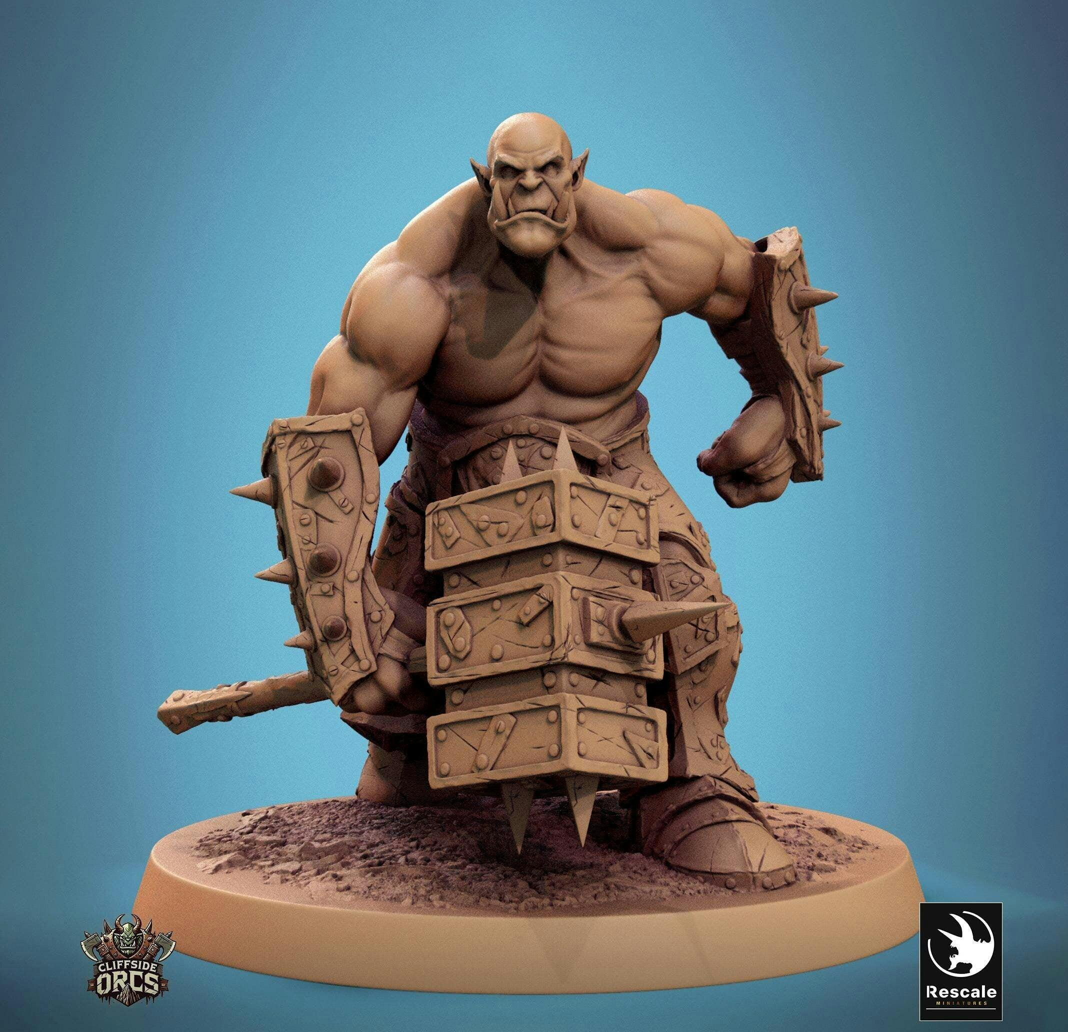 You are purchasing a single unpainted resin miniature of a Orc Fighter Barbarian Battle Hammer, Half-Orc.