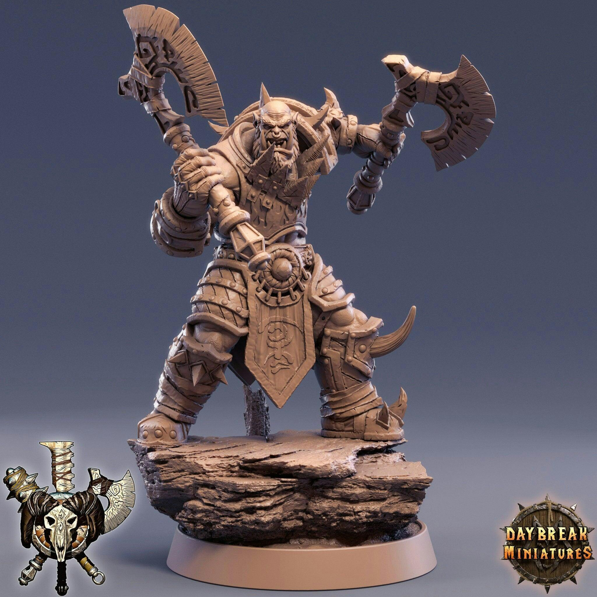 Orc Fighter Warrior Barbarian 2-Weapon Style Axes | Scales: 28mm |32mm |54mm|75mm|100mmMegaboss | Dungeons and Dragons | Pathfinder |