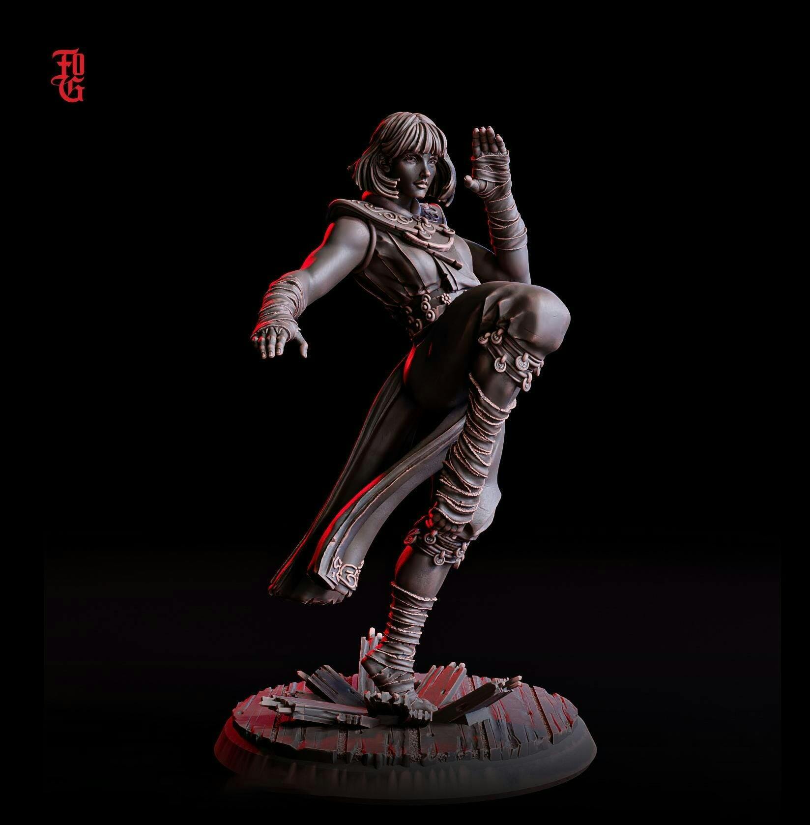 Female Human Monk PC NPC Unpainted Miniature | 28mm, 32mm,54mm, 75mm, 100mm Scale Resin Mini | Dungeons and Dragons D&D 5e | Flesh of Gods