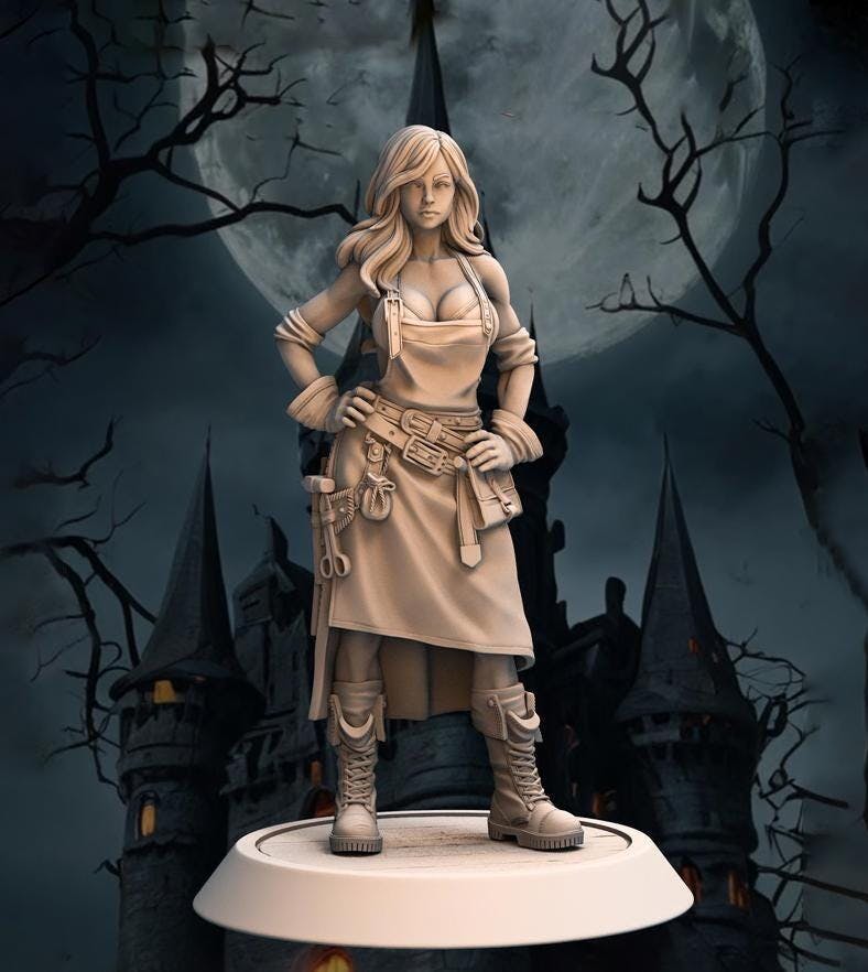 You are purchasing a single unpainted resin miniature of a Human Female Rogue, Thief, Blacksmith PC NPC Miniature NSFW Topless versions available.