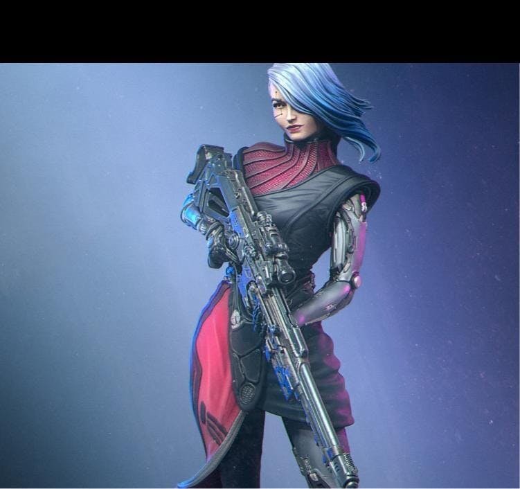 You are purchasing a single unpainted resin miniature of a Sci-Fi Female Cyborg Sniper Assassin, Display Details.