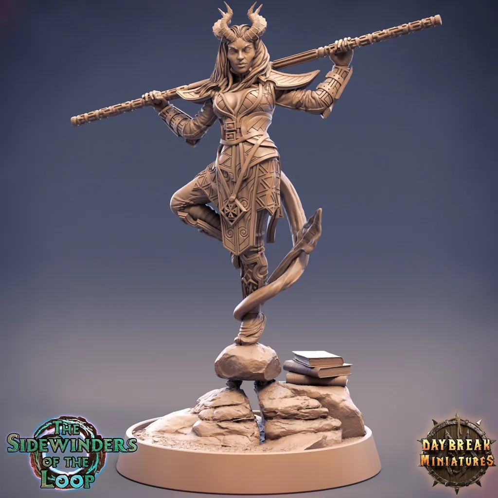 You are purchasing a single unpainted resin miniature of a Female Tiefling Monk.