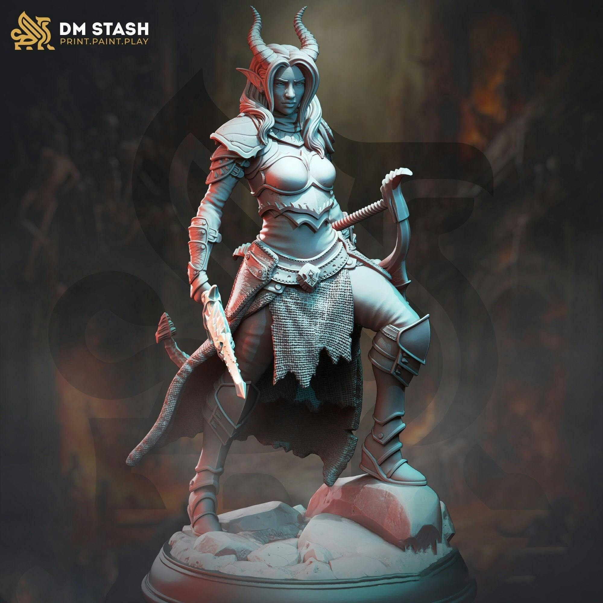 Female Tiefling Ranger Fighter Rogue Miniature | 28mm, 32mm,54mm, 75mm, 100mm Scales | Pathfinder Figure | DnD | Figurine unpainted |