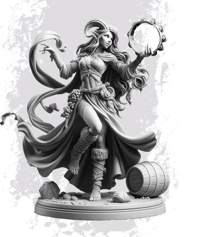 You are purchasing a single unpainted resin miniature of a Tiefling Female Bard, Rogue Arcane Trickster, Thief PC NPC Miniature NSFW Topless & Nude versions available.