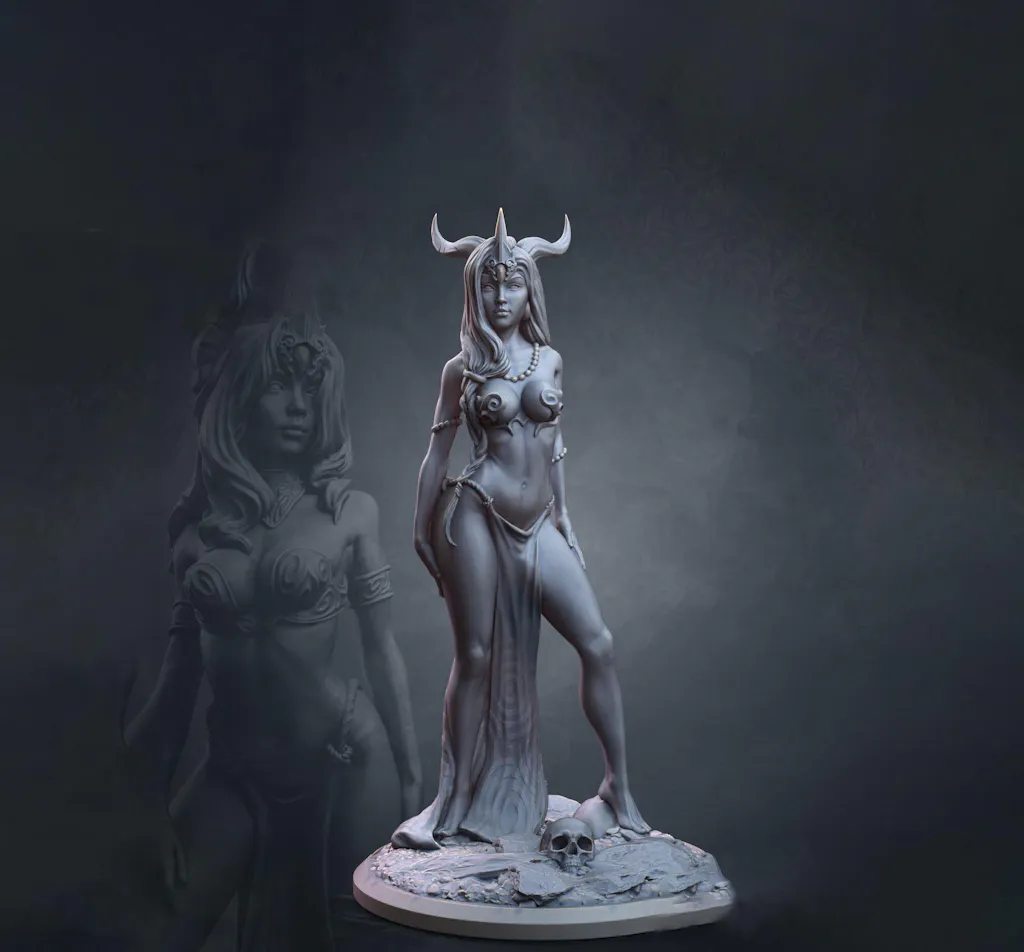 Tiefling Female Sorcerer, Druid PC NPC NSFW Topless versions | 5 Sizes/ Scales | Unpainted Miniature