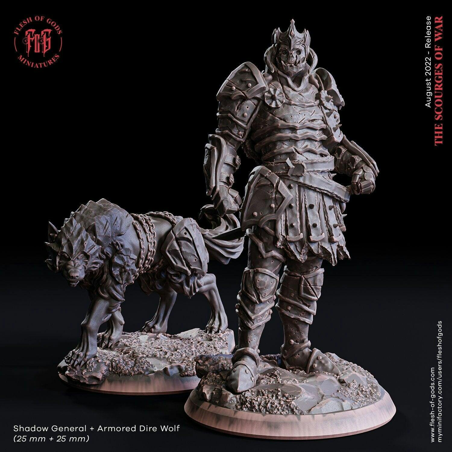 Undead Death Knight, Shadow General and Dire Wolf| 28mm, 32mm, 75mm Scale Resin Miniature | Flesh of Gods | Dungeons and Dragons |