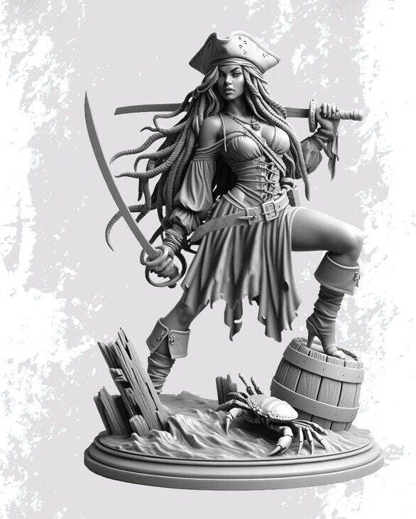 Human Female Pirate, Swashbuckler Rogue, Thief PC NPC Miniature NSFW Topless & Nude versions | 28mm,32mm,54mm,75mm,100mm Scales |DnD 5e