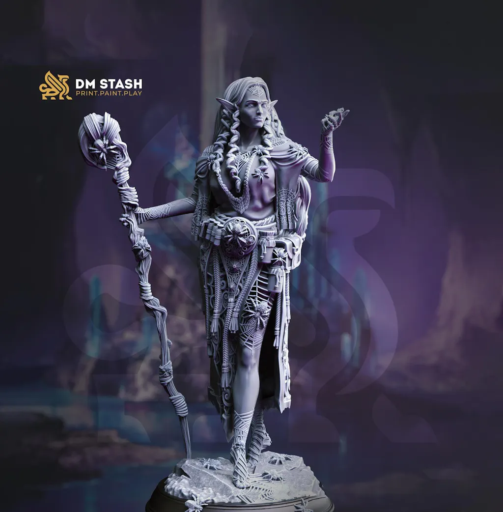 Dark Elf Female Cleric, Sorcerer, Wizard PC/ NPC Miniature | 28mm, 32mm,54mm,75mm, 100mm Scales | Dungeons and Dragons Pathfinder | DM Stash
