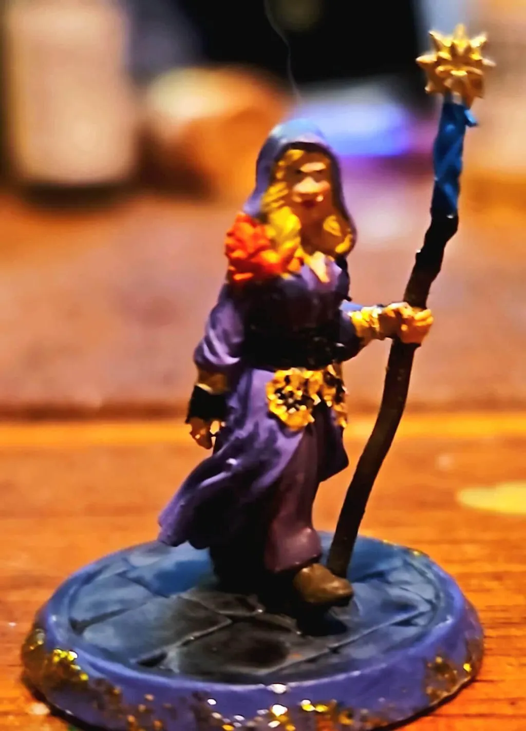 You are purchasing a single unpainted resin miniature of a Halfling Gnome Druid Wizard Adventurer PC NPC.