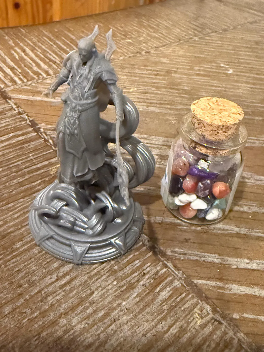 This 3d printed miniature is cleaned of supports, and then cured. Your figure will be printed along with a base. Minor assembly and cleaning required .