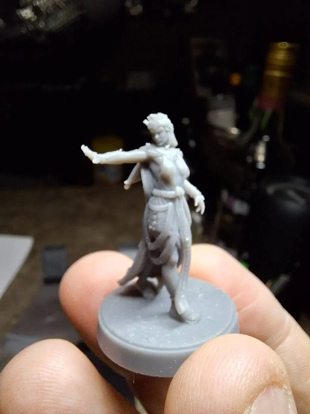 This 3d printed miniature is cleaned of supports, and then cured. Your figure will be printed along with a base. Minor assembly and cleaning required .