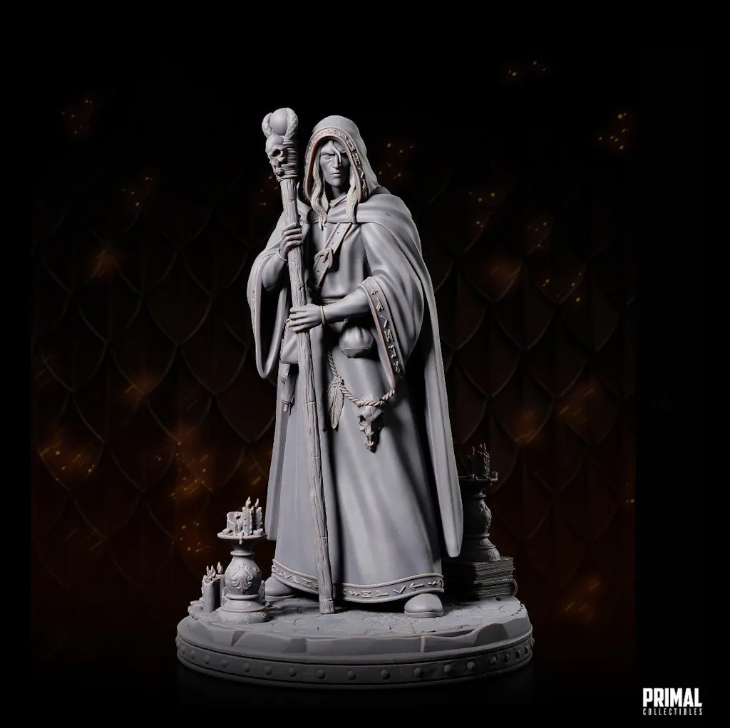 You are purchasing a single unpainted resin miniature of a Human Male Wizard, Sorcerer, Warlock PC NPC Miniature.