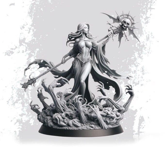 Necromancer, Wizard, Warlock, Sorcerer , PC NPC Miniature | NSFW Topless & Nude versions | 28mm, 32mm,54mm, 75mm, 100mm Scales | DnD 5e