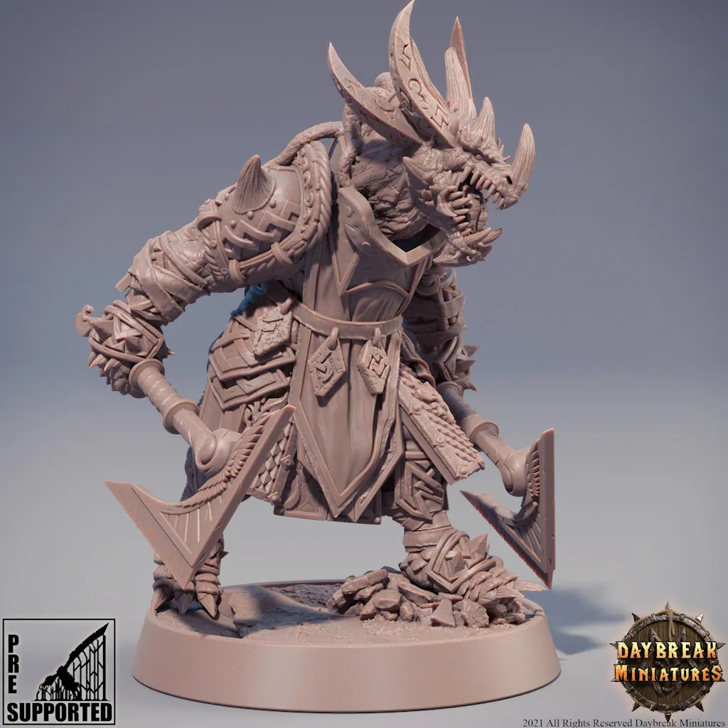 Dragonborn Fighter Two weapon style axes | 28mm, 32mm,54mm,75mm,100mm Scale Resin Miniature | Dungeons and Dragons Miniatures | Pathfinder |
