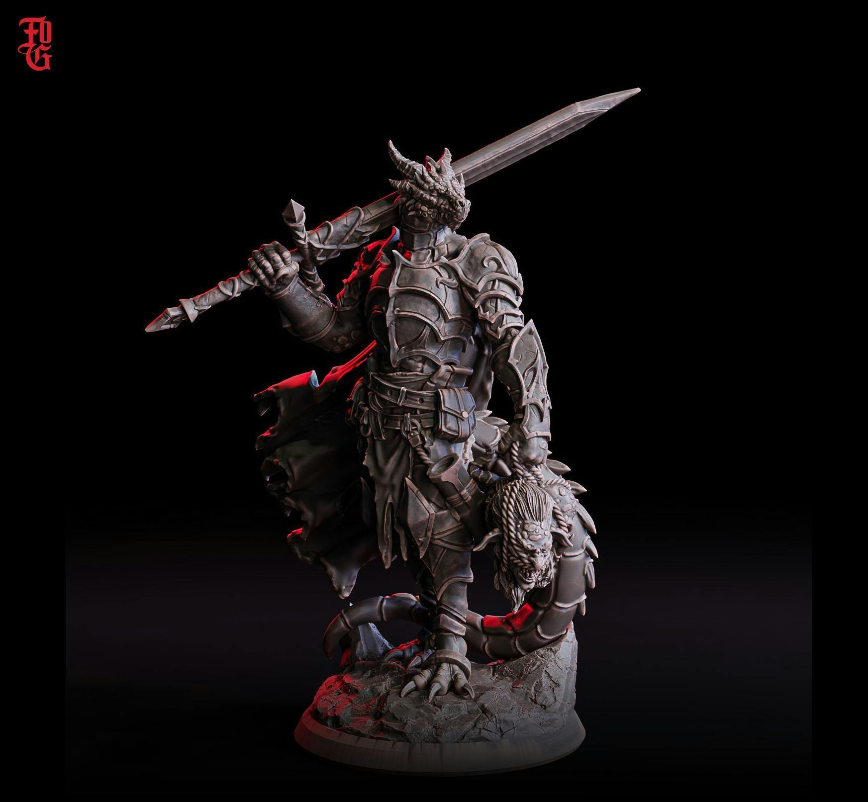 Dragonborn Paladin Fighter 2handed Sword model | 28mm, 32mm,54mm,75mm, 100mm Scale Resin Miniature | D&D 5e | Pathfinder | Flesh of Gods