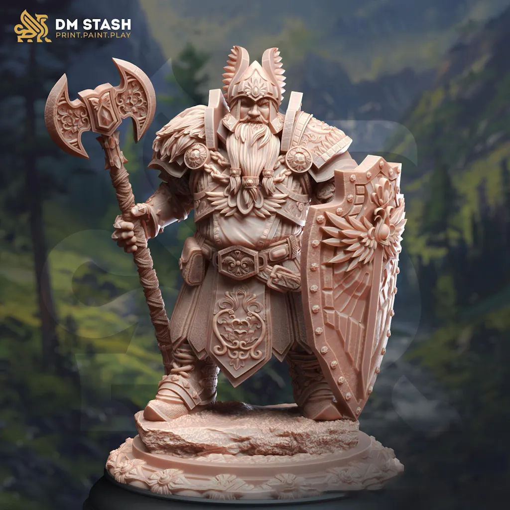 Dwarf Fighter Battlemaster, Paladin, Cleric Axe & Shield PC/NPC Miniature | 28mm, 32mm,54mm,75mm,100mm Scales | DnD 5e Pathfinder | DM Stash