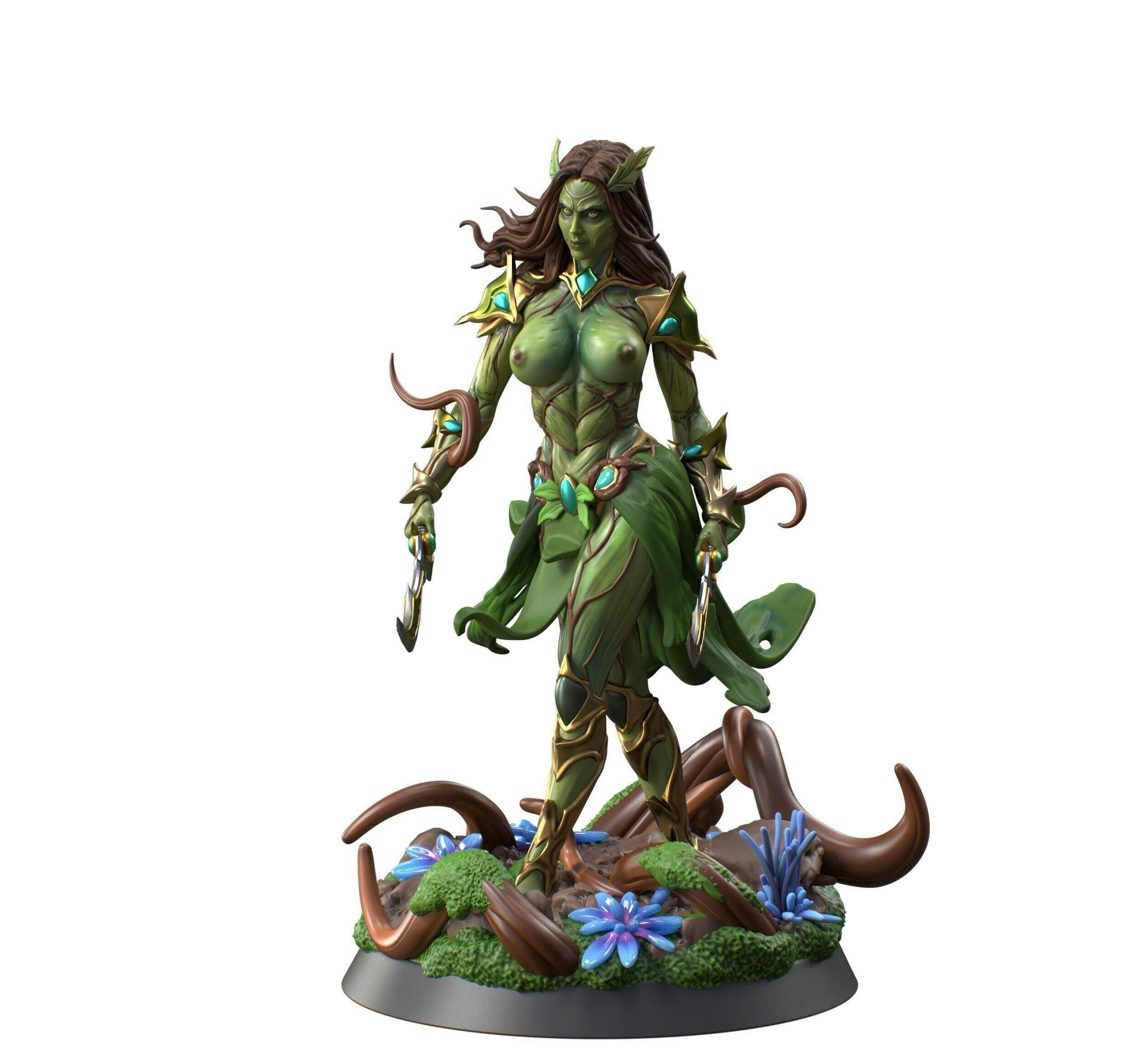 You are purchasing a single unpainted resin miniature of a Female Fey Druid Circle of Land with Dual Scimitars NSFW, Fey Warlock.