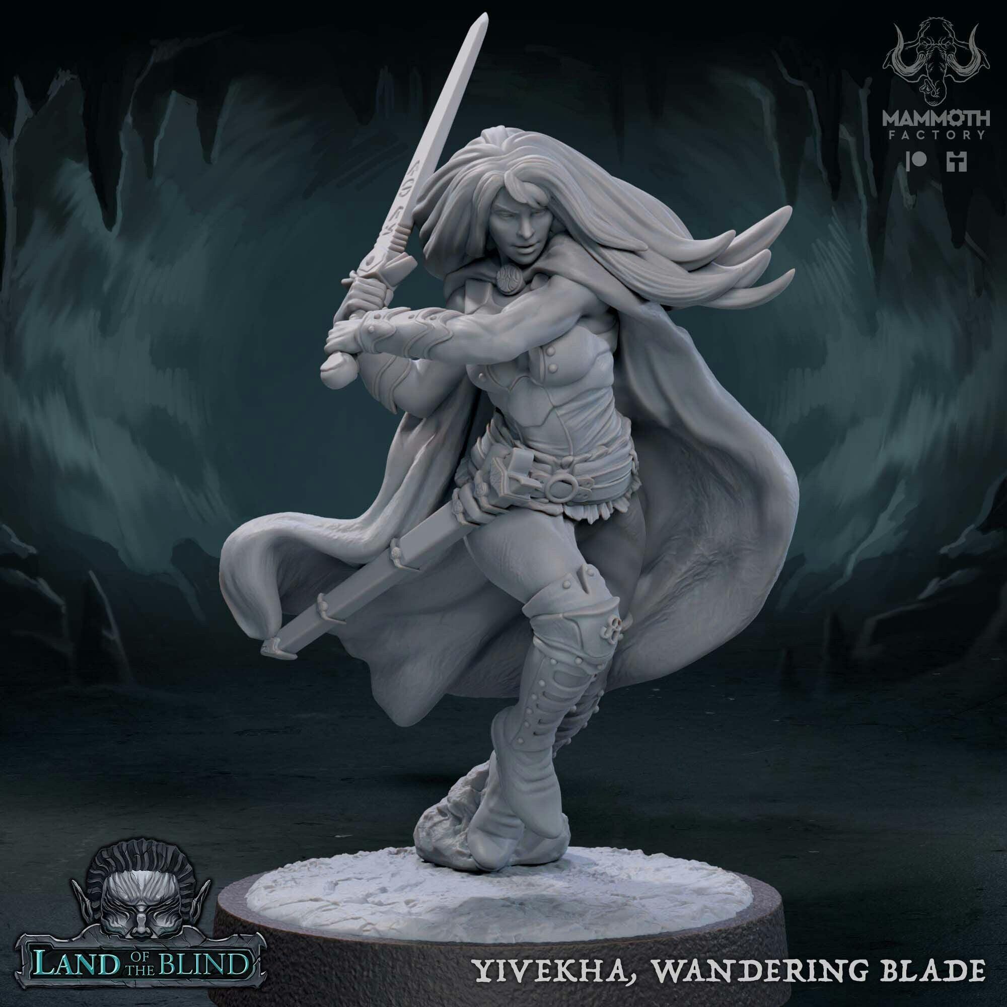 Female Human Fighter SwordMaster Ranger | 28mm, 32mm, 54mm, 75mm Scale Resin Miniature |Dungeons and Dragons | Yivekha | Mammoth Factory