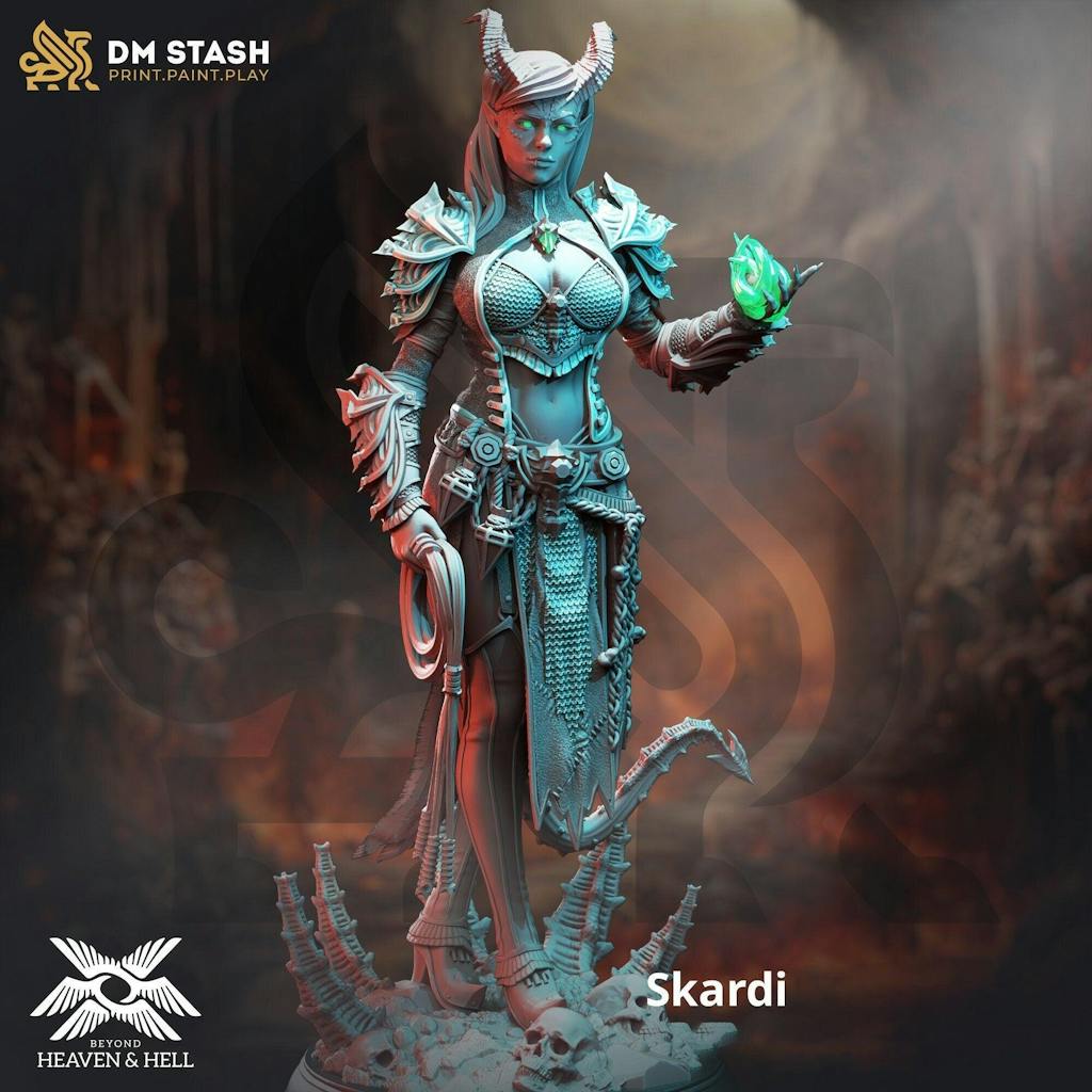 Female Tiefling Sorcerer Warlock Arcane TricksterMiniature | 28mm, 32mm,54mm,75mm, 100mm Scales | Dungeons and Dragons5E | DM Stash